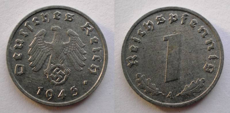 Vokietija 1 ReichsPfennig 1943 UNC Nuo.1 Lt