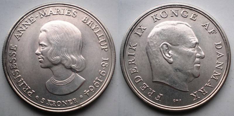 Danija 5 Kronos 1964 Sidabras Puiki Nuo1 LT.