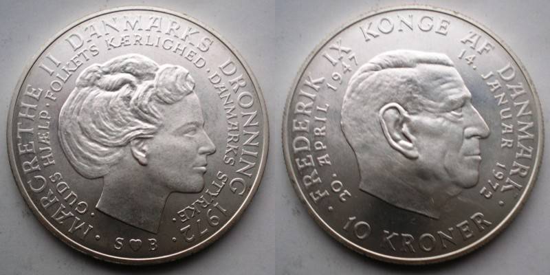 Danija 10 Kronu 1972 Sidabras Puiki Nuo 1 Lt