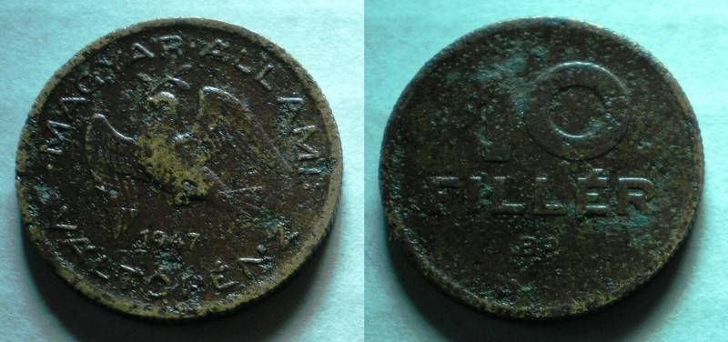 Vengrija 10 Filler 1947 Nuo.1Lt