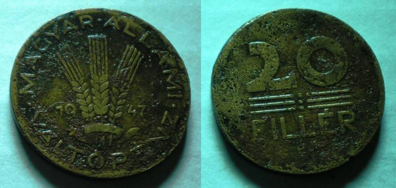 Vengrija 20 Filler 1947 Nuo.1Lt