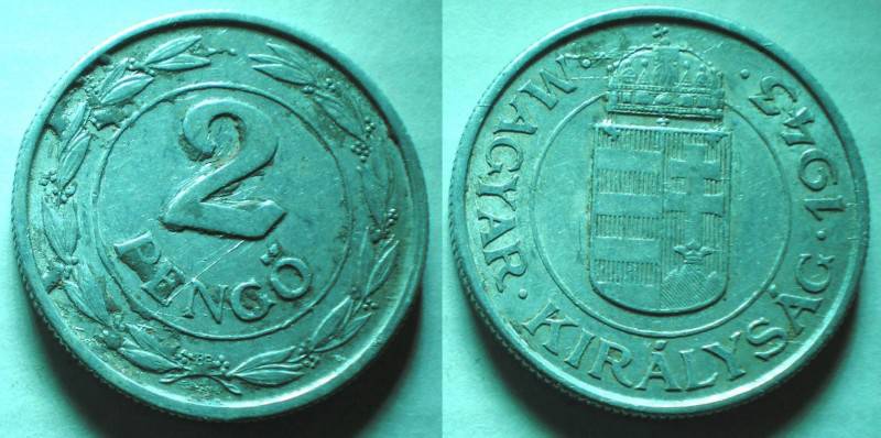 Vengrija 2 Pengo 1943 Nuo.1Lt