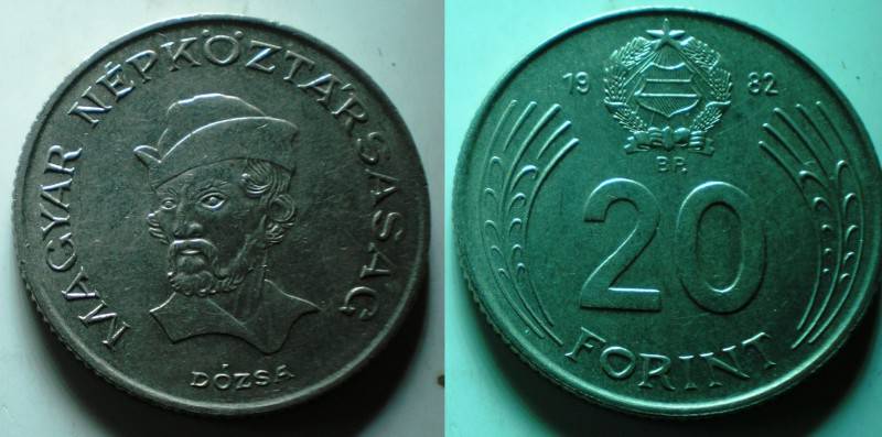 Vengrija 20 Forint 1982 Dozsa Puiki Nuo.1Lt