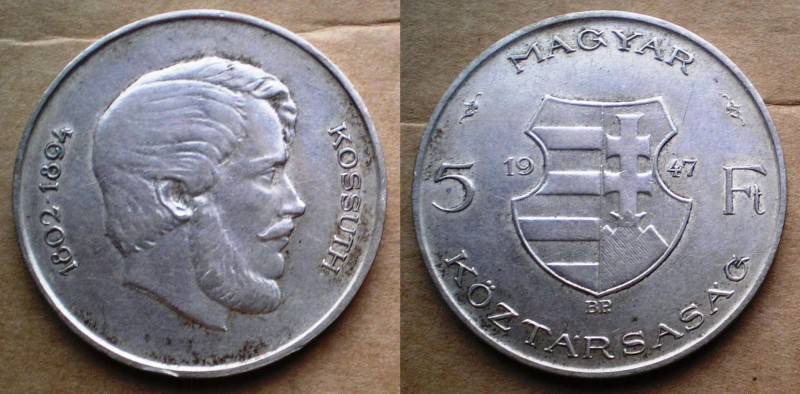 Vengrija 5 Forint 1947 Sidabras Puiki Nuo.1 Lt