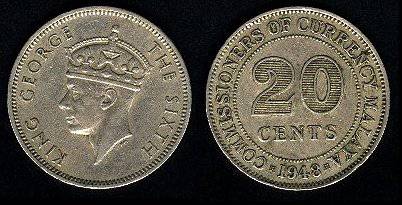 Malaizija-Malaja 20 centų 1950 m., KM#9, VF