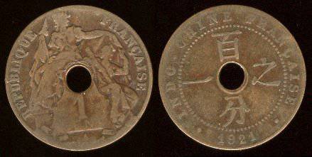 Prancūzų Indokinija 1 centas 1939, KM#12.1, VF-