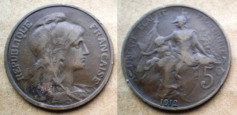 Prancuzija 5 Centimes 1912 Nuo 1 Lt
