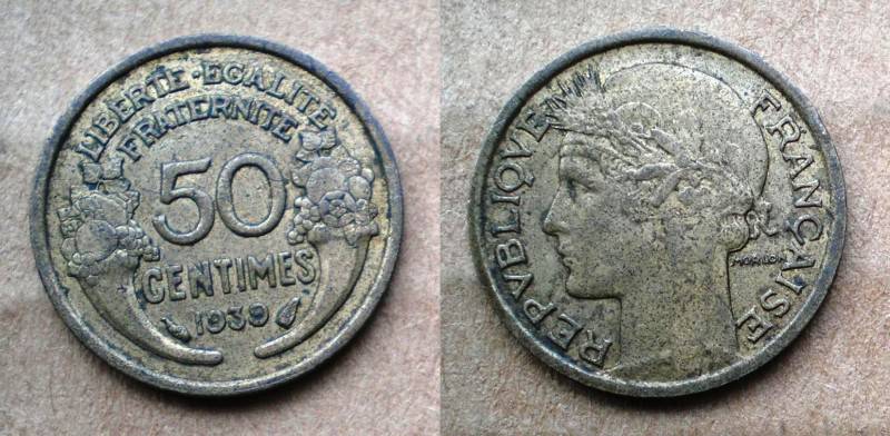 Prancuzija 50 Centimes 1939 Puiki Nuo 1Lt.