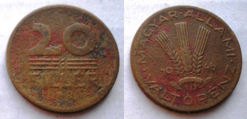 Vengrija 20 Filler 1946 Nuo.1Lt