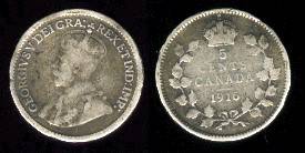 Kanada 5 centai 1918 m., KM#22, Ag, VF-