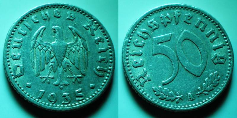 Vokietija 50 ReichsPfennig 1935 Grazi Nuo.1 Lt