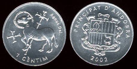 Andora 1 santimas 2002 m., KM#178, Unc