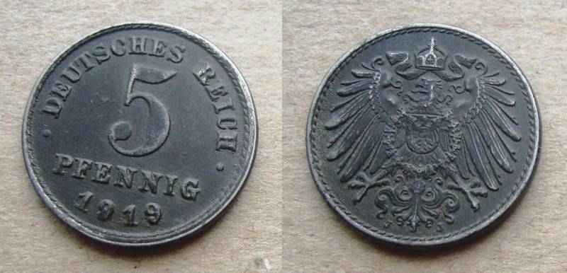 Vokietija 5 Pfennig 1919J Nuo.1Lt