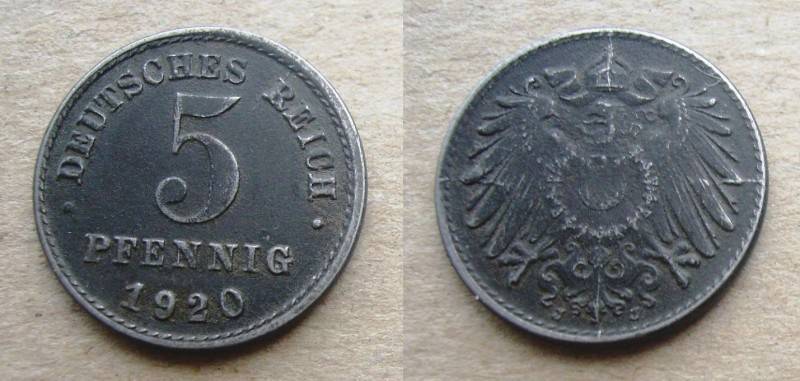Vokietija 5 Pfennig 1920J kt Nuo.1Lt