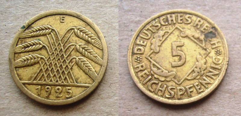 Vokietija 5 ReichsPfennig 1925E Nuo.1Lt