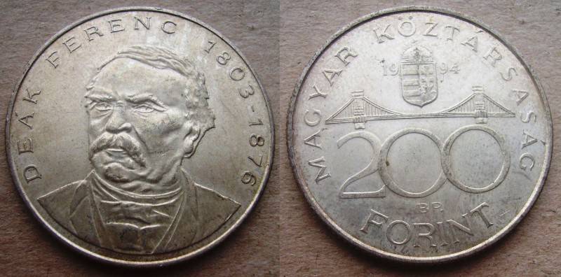 Vengrija 200 Forint 1994 Sidabras Puiki Nuo.1 Lt