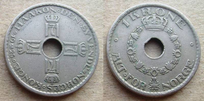 Norvegija 1 Krona 1925 Retoka Nuo.1Lt