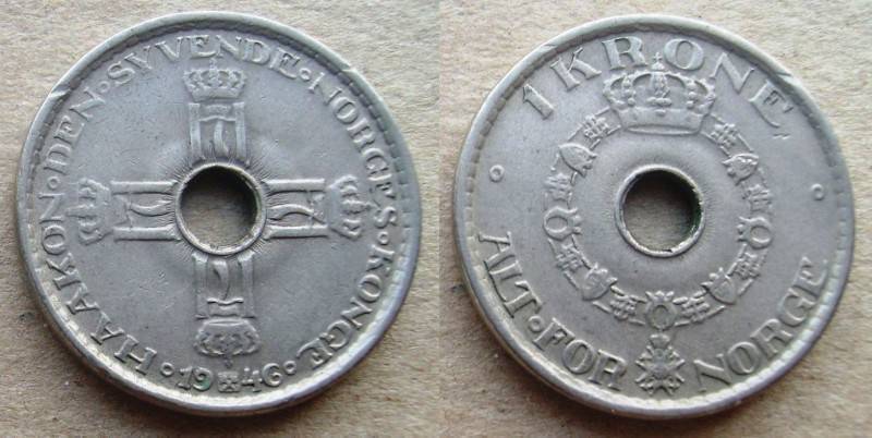 Norvegija 1 Krona 1946 Retoka Nuo.1Lt