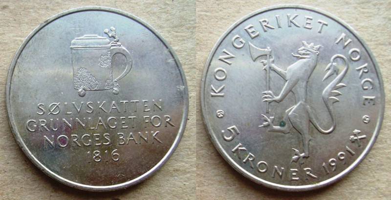 Norvegija 5 Kronos 1991 Bokalas Puiki Nuo.1Lt