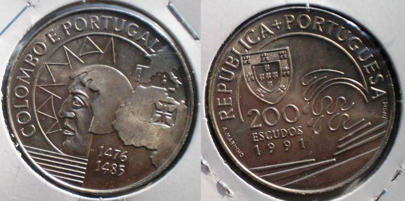 Portugalija 200 Escudos 1991 Colombo UNC Nuo 1 Lt