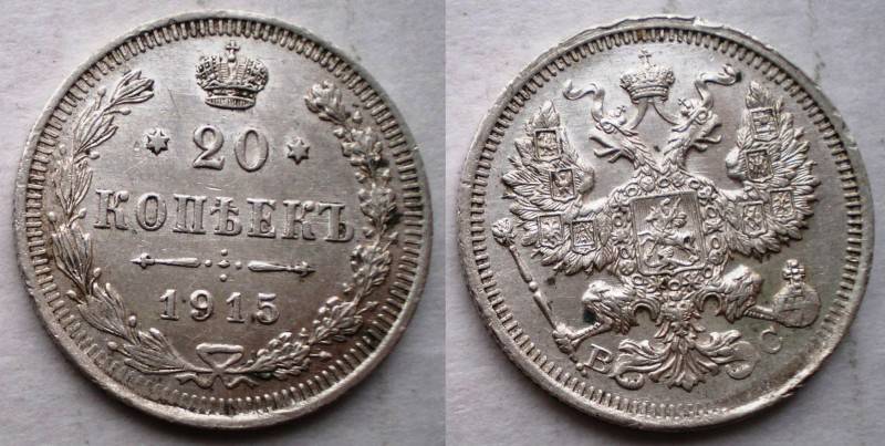 Rusija 20 Kapeiku 1915 Sidabras Puiki aUNC Nuo.1Lt