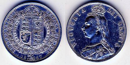 Didžioji Britanija ½ kronos 1887, KM#764, Ag, XF