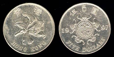 Honkongas 5 doleriai 1997 m., KM#77, Unc