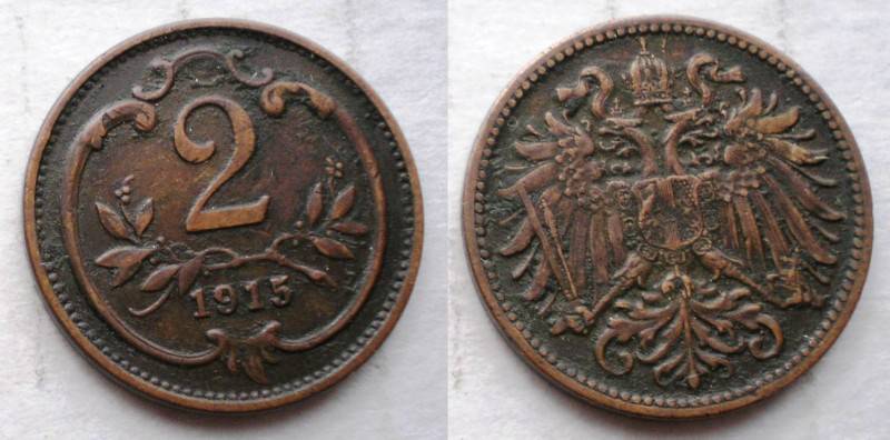 Austrija 2 Heller 1915 Nuo 1 Lt