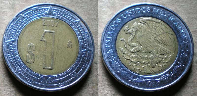 Meksika 1 Peso 2007 Bi-Met Puiki Nuo.1Lt