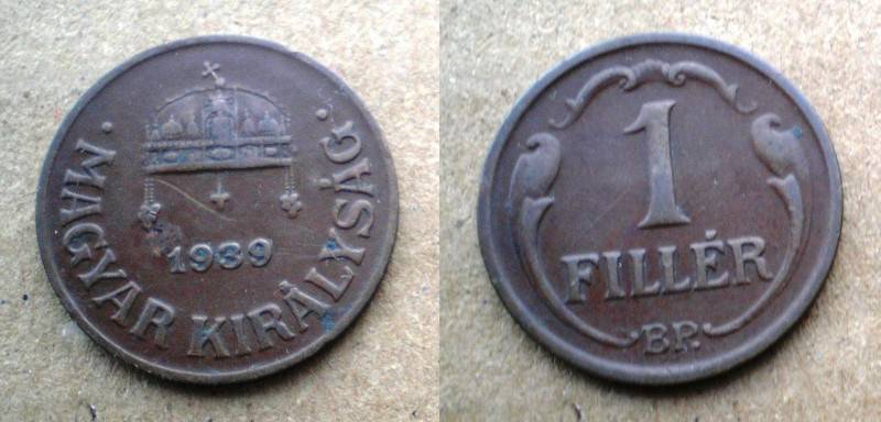 Vengrija 1 Filler 1939 kt Nuo.1Lt