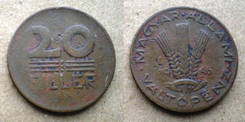 Vengrija 20 Filler 1946 kt Nuo.1Lt