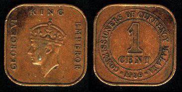 Malaizija-Malaja 1 centas 1941 m., KM#2, VF
