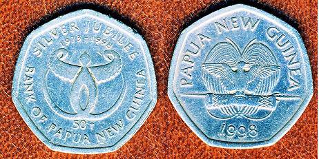 Papua Naujoji Gvinėja 50 toea 1998 m., KM#41, VF-