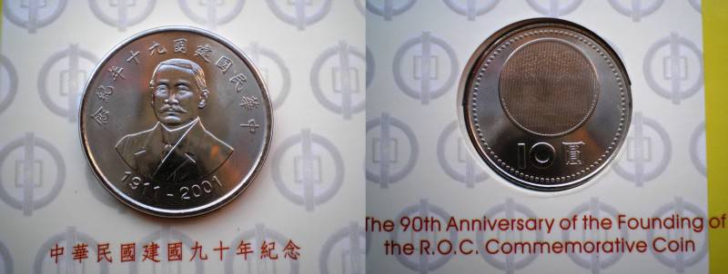 Taivanas 10 Dollar(10Yuan) 2001 90th Nuo.1Lt