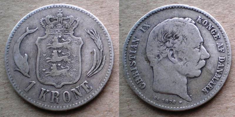 Danija 1 Krona 1876 Sidabras Nuo.1Lt