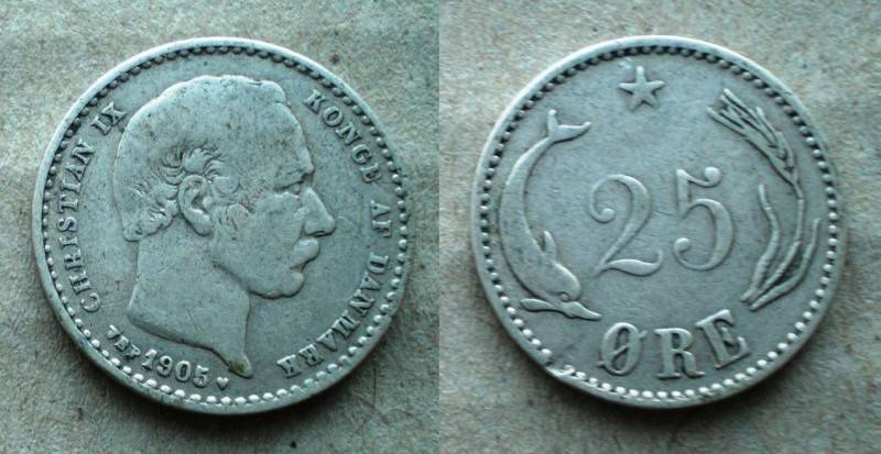 Danija 25 Ore 1905 Sidabras Retoka Nuo.1Lt