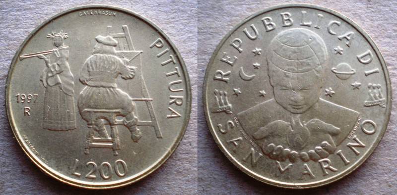 San Marinas 200 Liru 1997 Pittura aUNC Nuo.1 Lt