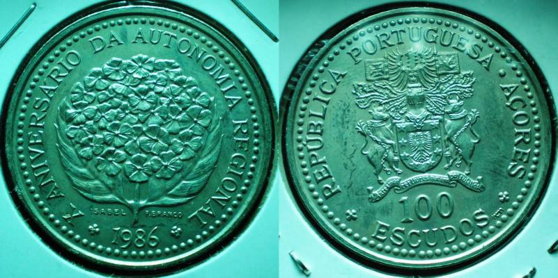 Azorai 100 Escudos 1986 Retoka UNC Nuo.1Lt