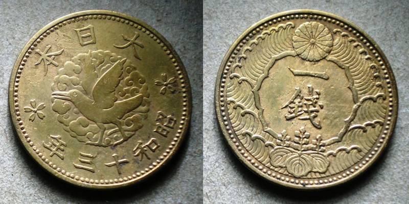 Japonija 1 Sen 1938 Su pauksciu Retoka Nuo.1Lt