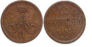Rusija,Aleksandras II, kapeika,1864M,Y#3.3, F