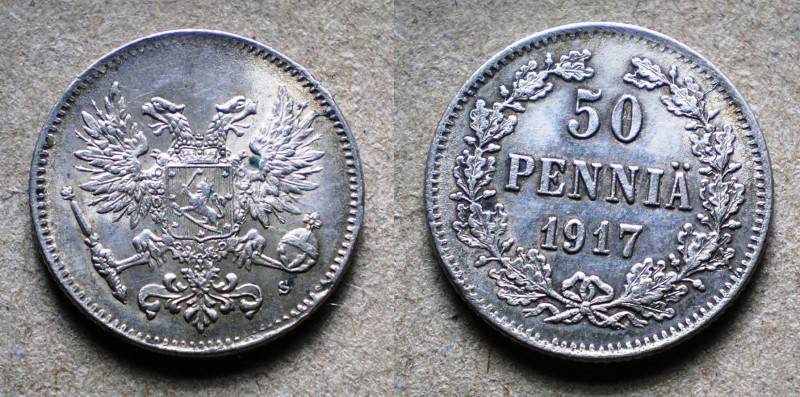 Rusija-Suomija 50 Pennia 1917 Sidabras Nuo.1Lt