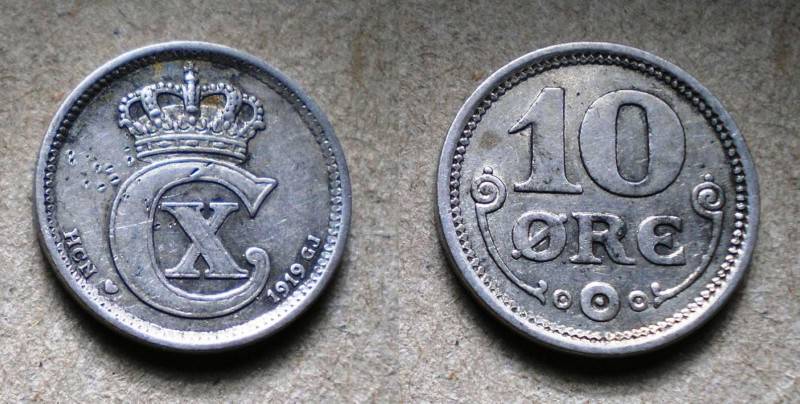 Danija 10 Ore 1919 Sidabras Nuo.1Lt
