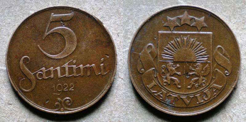 Latvija 5 Santimi 1922 Nuo.1Lt