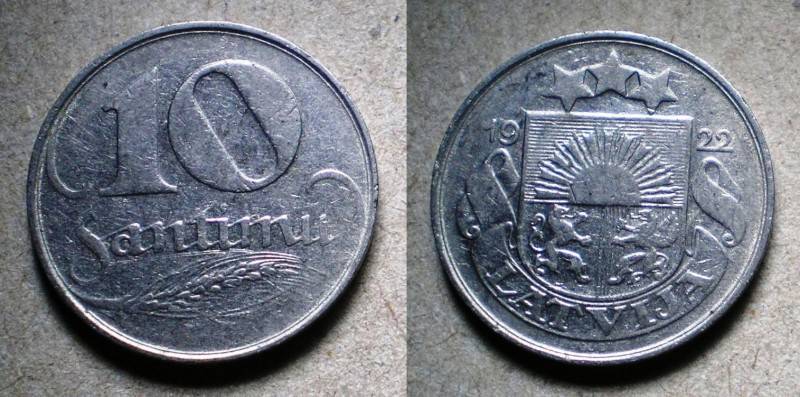 Latvija 10 Santimu 1922 Nuo.1Lt