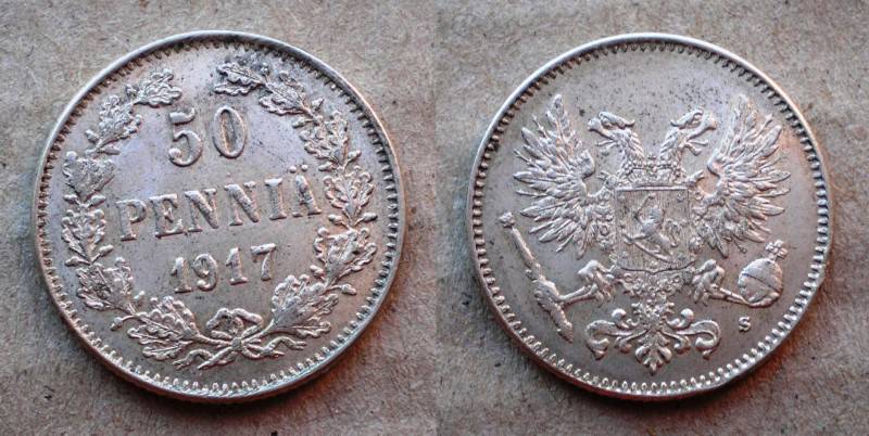 Rusija-Suomija 50 Pennia 1917 Sidabr Puiki Nuo.1Lt