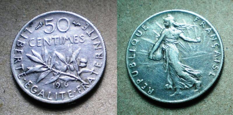 Prancuzija 50 Centimes1916 Sidabras Nuo.1Lt