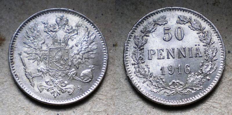 Rusija-Suomija 50 Pennia 1916 Sidabr PuikiNuo.1Lt