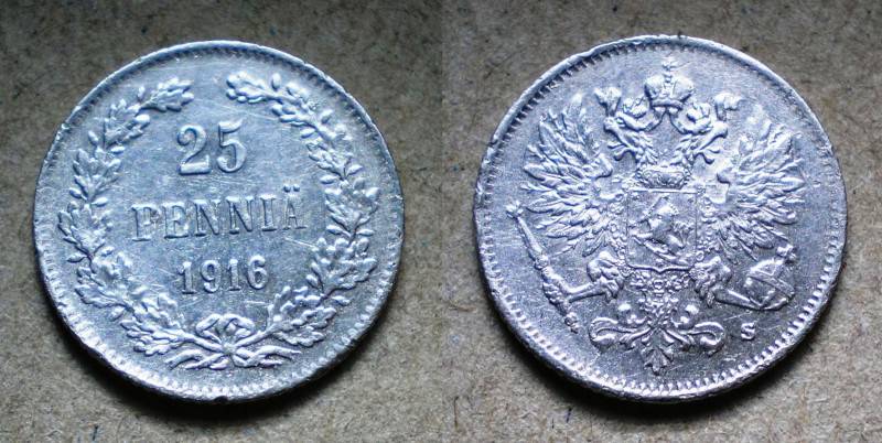 Rusija-Suomija 25 Pennia Sidabras Nuo.1Lt