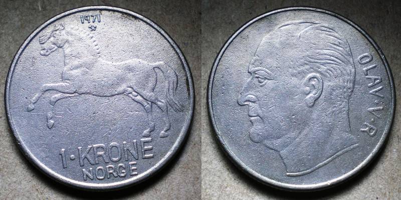 Norvegija 1 Krona 1971 Nuo.1 Lt