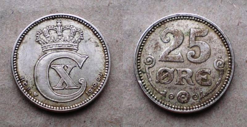 Danija 25 Ore 1919 Sidabras Puiki Nuo.1Lt